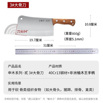 厨具---刀剪菜板---砍骨刀/砍斧刀王麻子申木贰-3#大骨刀