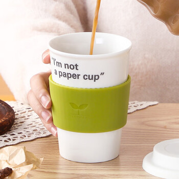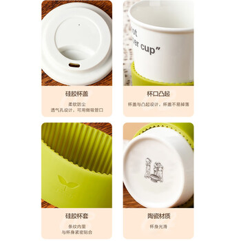 "材质: 杯体/杯盖- 陶瓷 杯套- 硅胶 产品颜色:字母 装箱数:12P CS/箱 产品规格:370ml 毛重:0.41KG"