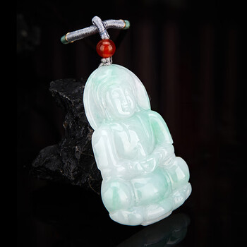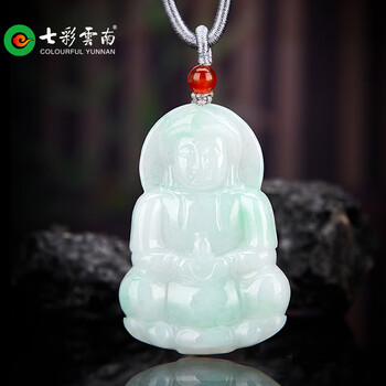 七彩云南翡翠观音吊坠玉观音观世音菩萨玉坠玉佩糯种翡翠观音男项链礼物