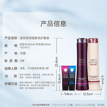 笛梵(DIFO)茶树强根洗护套装控油去屑京东自营洗发水400ml+护400ml+50ml*2