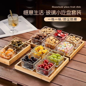 青苹果水果盘分格干果盘家用糖果零食点心果盘四格节日礼盒装