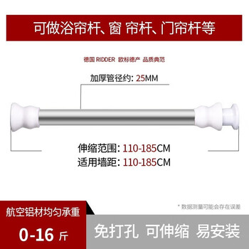 RIDDER 德国进口浴帘杆伸缩杆免打孔窗帘晾衣杆镀铬色110-185cm