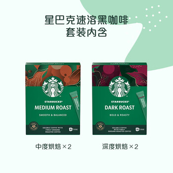星巴克速溶黑咖啡粉 0糖美式健身便携即冲 10条23g*4盒【中度+深度】