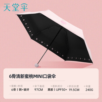 天堂 防紫外线阳伞五折 小巧便携水果伞折叠结实晴雨两用女 甜杏粉