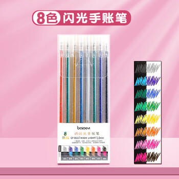 金值 单盒8色混装彩色闪光啫喱笔 手账专用亮晶晶发光闪粉 变色荧光流沙珠光绘画 儿童闪亮啫哩笔