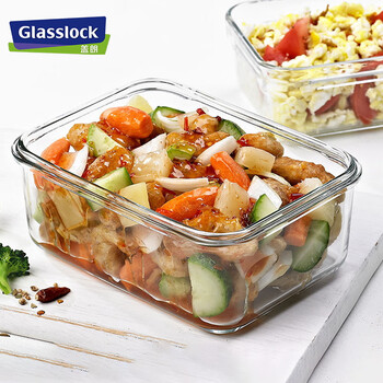 Glasslock进口钢化玻璃保鲜盒上班族带饭微波炉加热便当盒大容量饭盒1100ml