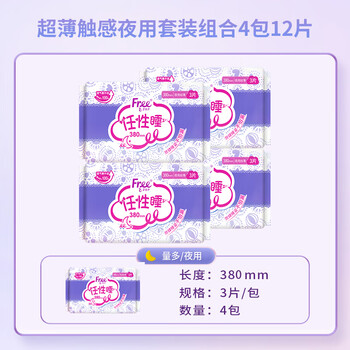 FREE京东自营卫生巾夜用组合 姨妈巾套装丝薄棉柔加长夜用380mm*12片