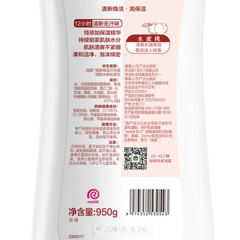 滴露清爽保湿沐浴露 清甜水蜜桃香 950g
