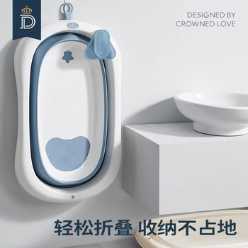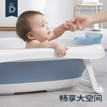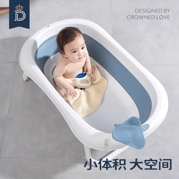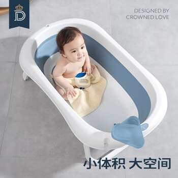 蒂爱婴儿洗澡盆 可折叠浴盆0-8岁新生儿童宝宝澡盆 送温度计 奶酪白