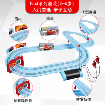 First系列汽车总动员竞速3039套装,套装内包含:轨道赛车*3,电池电源盒*1,手柄*2直轨*2,转窄轨*1,弯轨*6,红色轨道支架*2,白色围栏支架*8,翻转障碍牌*1套,围栏*1,