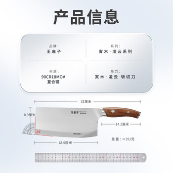 王麻子菜刀家用 厨师专用顶级9铬钢刀具 厨房锋利切片切肉切菜刀厨具