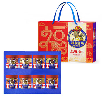 如水紫皮腰果160g 如水开心果150g 如水琥珀核桃仁150g 如水原味南瓜籽仁180g 如水夏威夷果160g 如水巴旦木120g 如水新疆葡萄干200g 如水大榛子120g 礼盒
