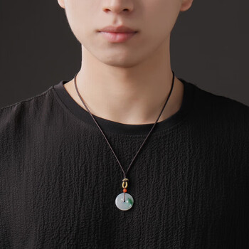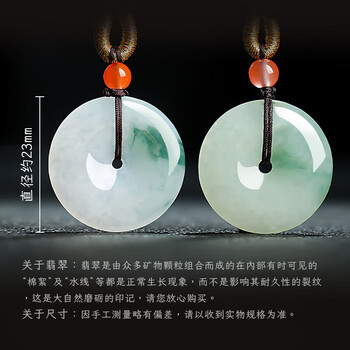 以心参玉【礼物】A货翡翠吊坠 飘花翡翠平安扣男女款 直径约23mm