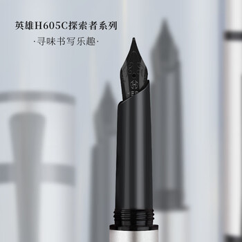 英雄(HERO)钢笔 商务办公时尚个性钢笔盒套【探索者】H605C 黑夹银色