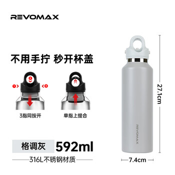 REVOMAX保温水杯男士小学生水杯上学专用316不锈钢保冷杯-格调灰592ml