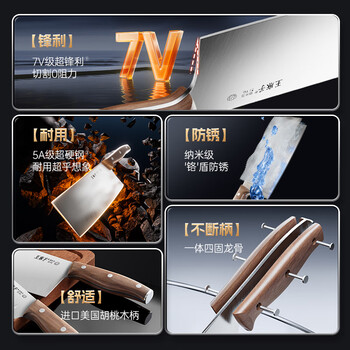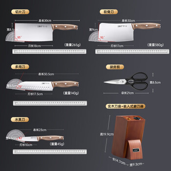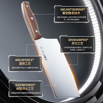 王麻子菜刀刀具全套 厨房用具大全家用厨具套装斩骨切菜切肉刀水果【进口胡桃木柄】送菜板
