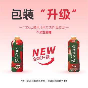 冠芳山楂树下果汁不加蔗糖1.25L*6瓶山楂汁送礼饮料整箱装