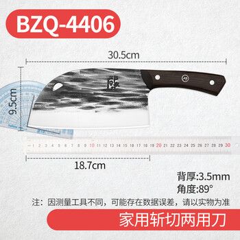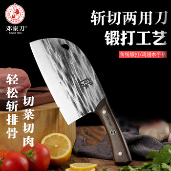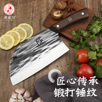 邓家刀锤纹真锻打不锈钢菜刀鸡翅木刀柄圆头斩切两用刀 BZQ-4406