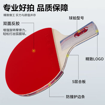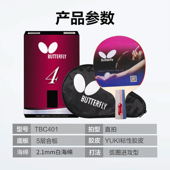 蝴蝶(Butterfly)四星乒乓球拍直拍 双面反胶皮5层底板401单拍内附拍套