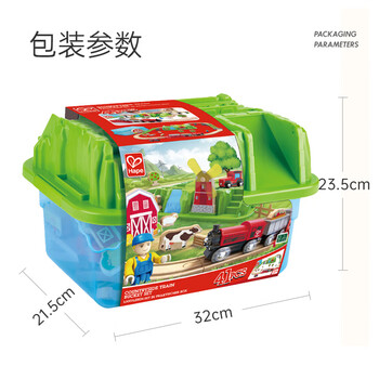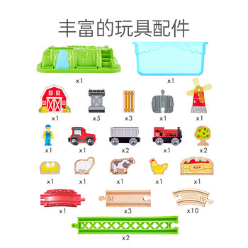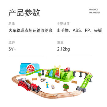 Hape(德国)儿童小火车轨道玩具木质拼插积木开心农场收纳套3岁+E3772