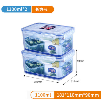 乐扣乐扣 大容量塑料保鲜盒套装密封便当盒餐盒饭盒冰箱收纳盒子1.1L*2