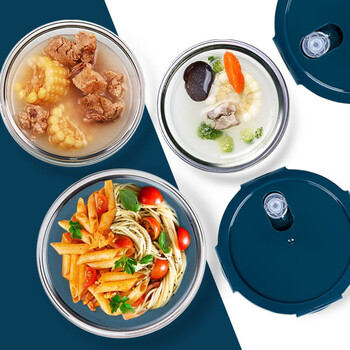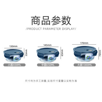 厨具---厨房储物---保鲜盒创得星海蓝圆400+650+1000ml+深蓝圆包+餐具