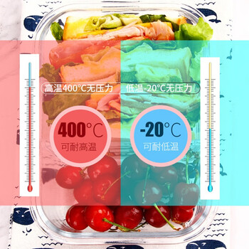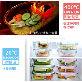 创得耐热玻璃保鲜盒微波炉饭盒上班族便当盒圆400+650+1000ml+包+餐具