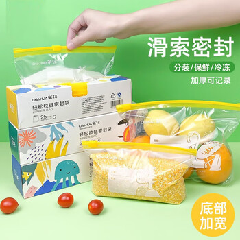 茶花 家用拉链密封袋密实袋食品袋收纳分装保鲜袋 中号20只