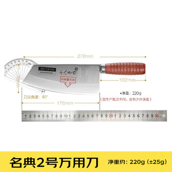 十八子作专业厨师刀复合钢刀具 花梨木柄 名典2号菜刀万用刀F214-2