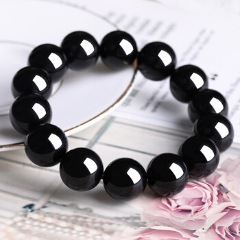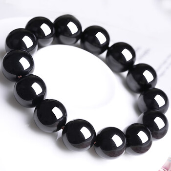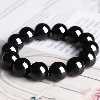石玥珠宝精品16mm天然黑曜石手串本命年佛珠转运珠水晶手链男女士款礼物