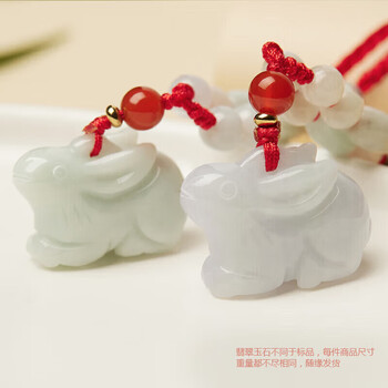 曼丽翠翡翠生肖兔吊坠玉坠项链立体十二生肖男女款礼物附证书