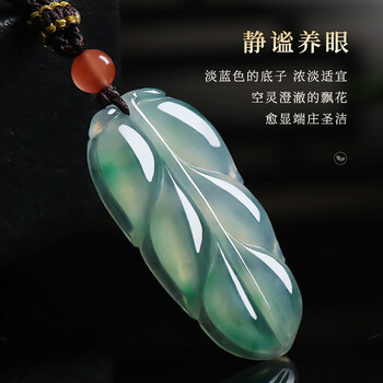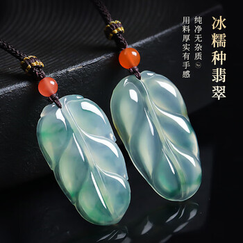 以心参玉【礼物】A货翡翠吊坠 男女款飘花树叶玉石挂件