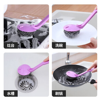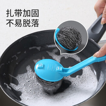 美丽雅带手柄钢丝球4支410不锈钢清洁球厨房抹布洗碗刷锅不易掉丝大号