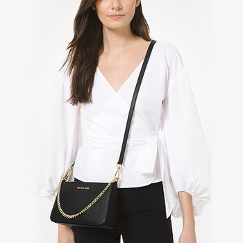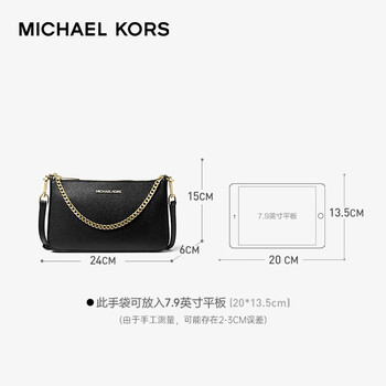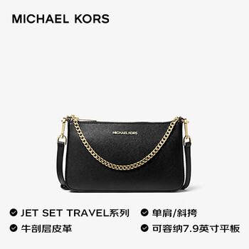 MICHAEL KORS礼物轻奢MK女包JET SET TRAVEL腋下斜挎手拿包中号黑/金色