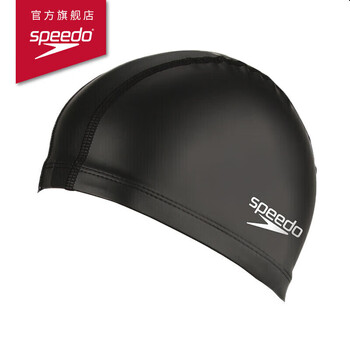 速比涛(Speedo)成人泳帽PU材质游泳装备柔软舒适不勒头长发时尚 黑色