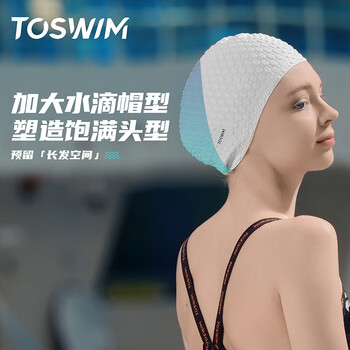 TOSWIM拓胜女士专用防水长发游泳帽加大硅胶护耳时尚泡泡泳帽 鲜乳白