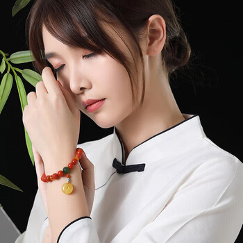 妍韵珠宝精品8-9mm南红玛瑙手串蜜蜡琥珀平安扣吊坠和田玉碧玉男女士手链