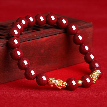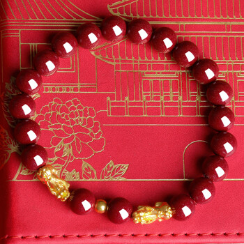 珠宝首饰---水晶/玛瑙/朱砂---手镯/手链/脚链石玥珠宝(SHIYUEZHUBAO)黄金双貔貅朱砂手串
