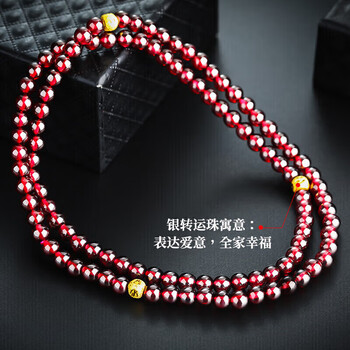 石玥珠宝精品5mm石榴石手链项链本命年银转运珠天然手串男女士款 水晶玛瑙