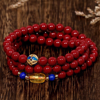 石玥珠宝高含量6mm紫金朱砂手串青金石蜜蜡本命年手链项链男女士款礼物