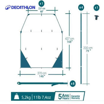 迪卡侬天幕遮阳篷防晒遮热遮光防雨Fresh象牙白加大适合8-10人-2963443