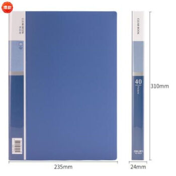 得力(deli)5004 A4透明活页试卷夹文件夹插页袋40页资料册蓝色 10本装