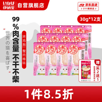 伊纳宝猫零食烤鸡胸肉条蟹肉棒味30g*12支