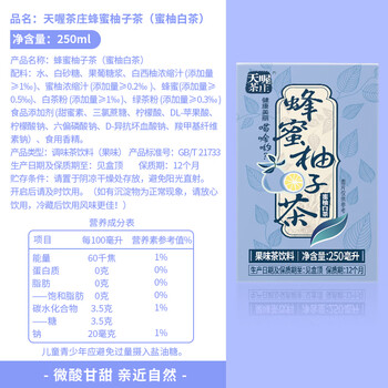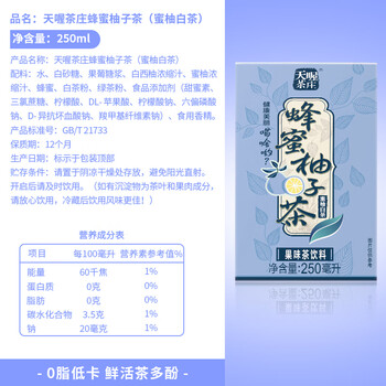 天喔 蜂蜜柚子茶蜜柚白茶250ml*16整箱装年货礼盒果味饮品凉茶饮料