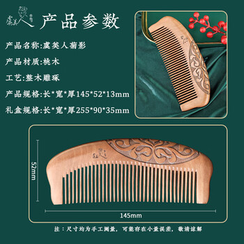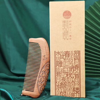 虞美人梳子天然桃木梳子生日礼物梳子女整木雕刻梳菊影