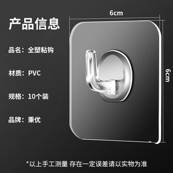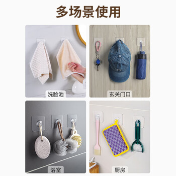 秉优 免打孔门后浴室挂钩子强力贴粘胶壁挂墙壁承重卫生间粘钩(10枚)