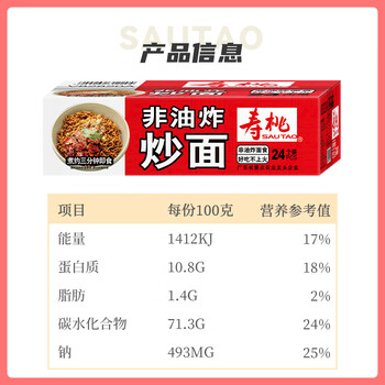 寿桃非油炸炒面挂面条方便面非油炸速食拉面早餐拌面宵夜1750g/箱