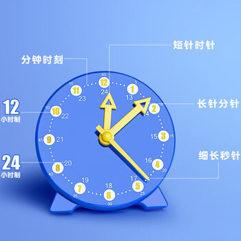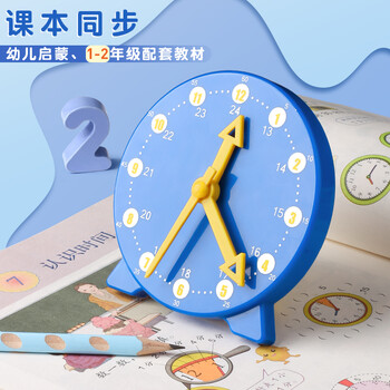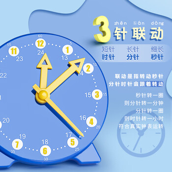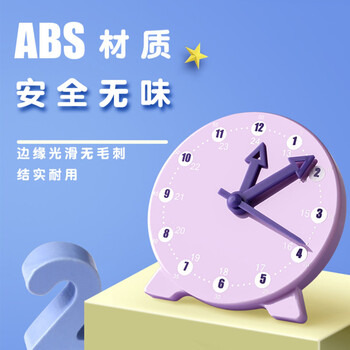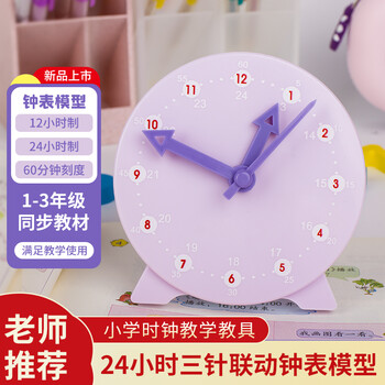 驯良鸽钟表模型小学生一二年级两针三针联动时钟儿童教学学具学习认识时间紫色款三针联动