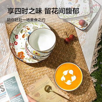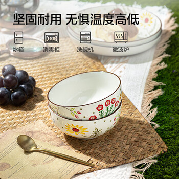 京东京造 美式碗 饭碗汤面碗陶瓷蒸鸡蛋羹沙拉 繁花系列 米饭碗4.5英寸*4