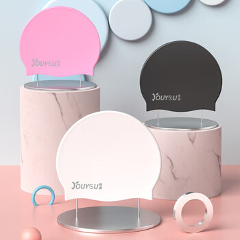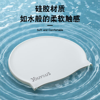 佑游泳帽硅胶防水男女通用长发护耳高弹舒适专业训练比赛泳帽7814黑色